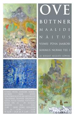 An exhibition of Ove Büttner’s paintings will be opened on Sunday, the 22th of July at 12.45 in Viimsi St James Church, Nurme Road 3, Harju county. The exhibition that coincides with Viimsi Church Days is the first event of the kind organised in the premises of the above mentioned church. It will be exhibited during the inauguration of recently erected church building on St. James Day, Wednesday, the 25th of July. The exhibition will be opened to the public up to the end of August.